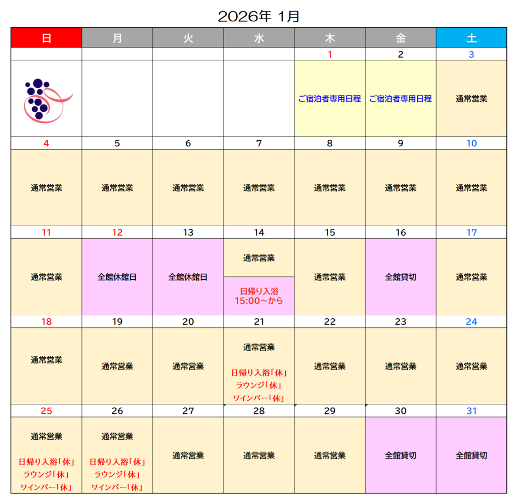 ◇日帰り入浴 13:00~18:00(通常営業)